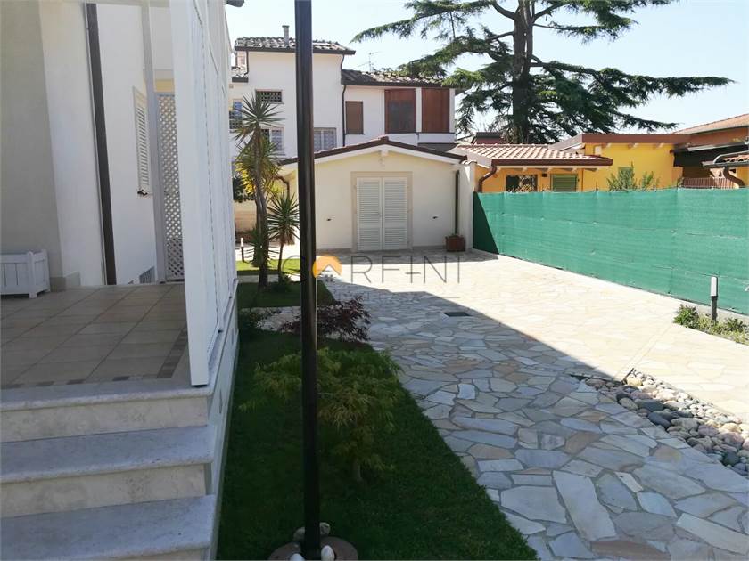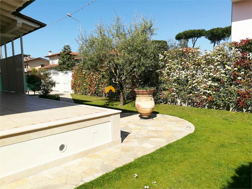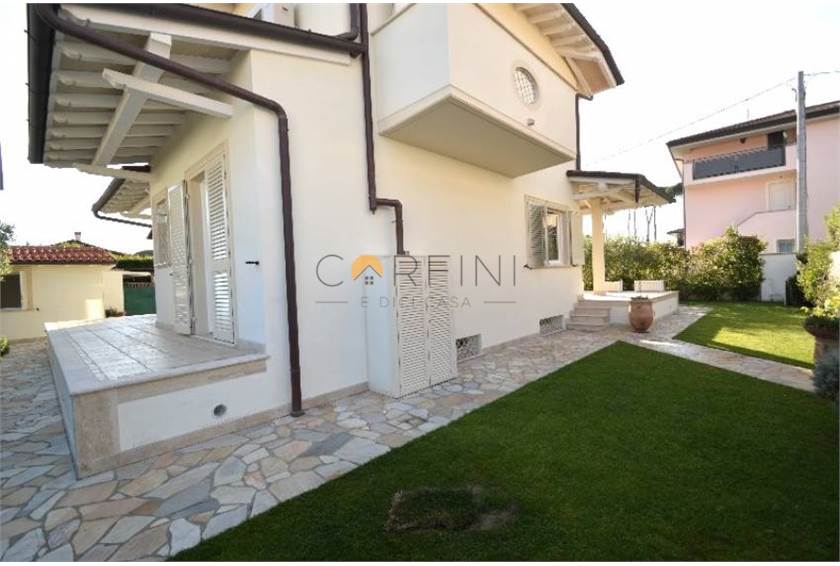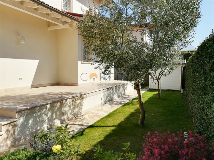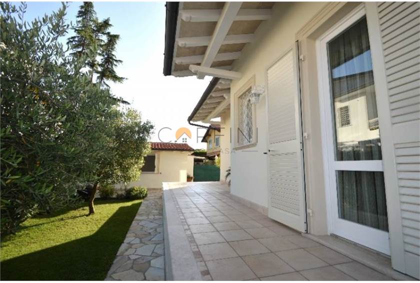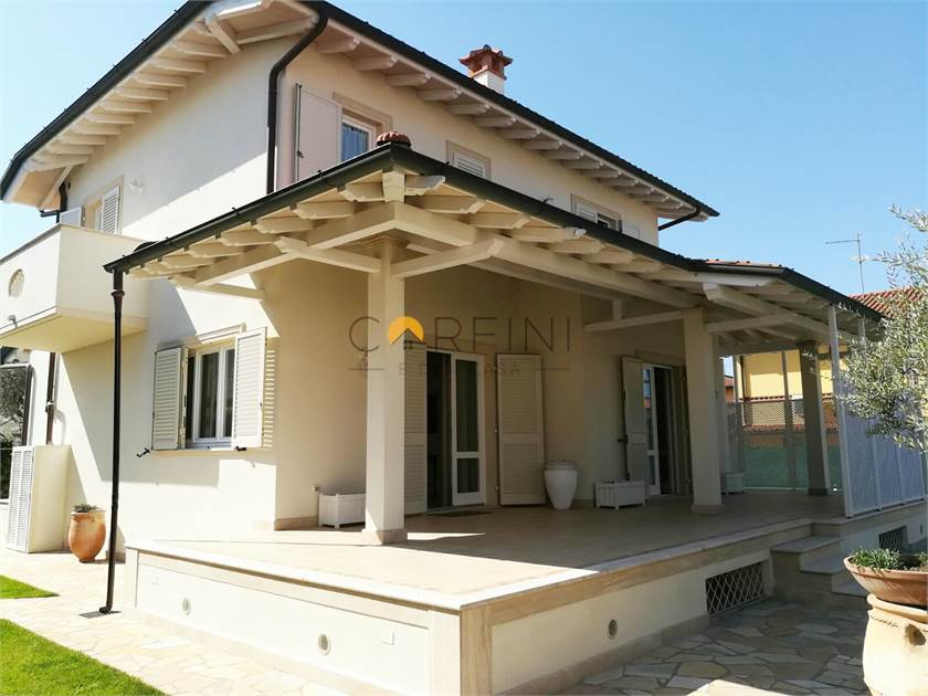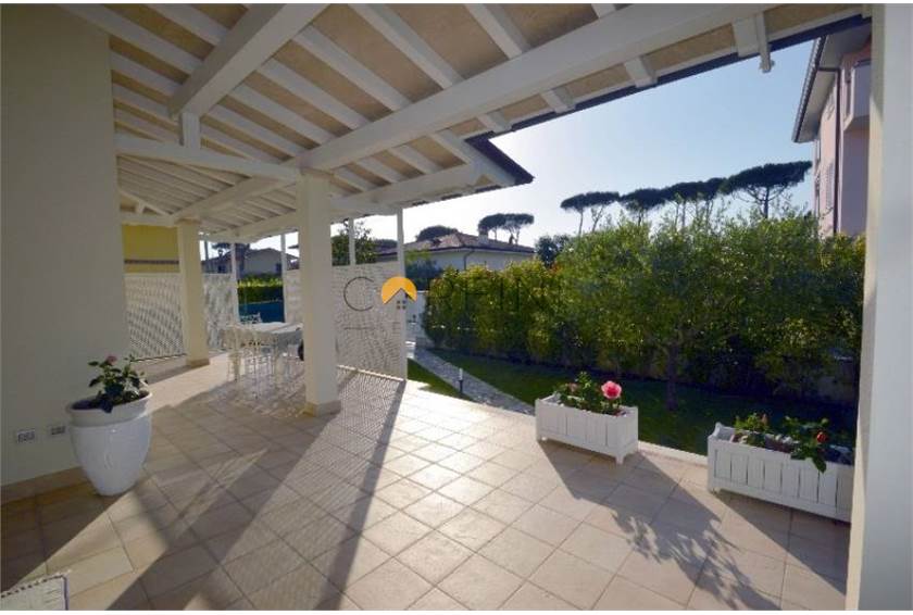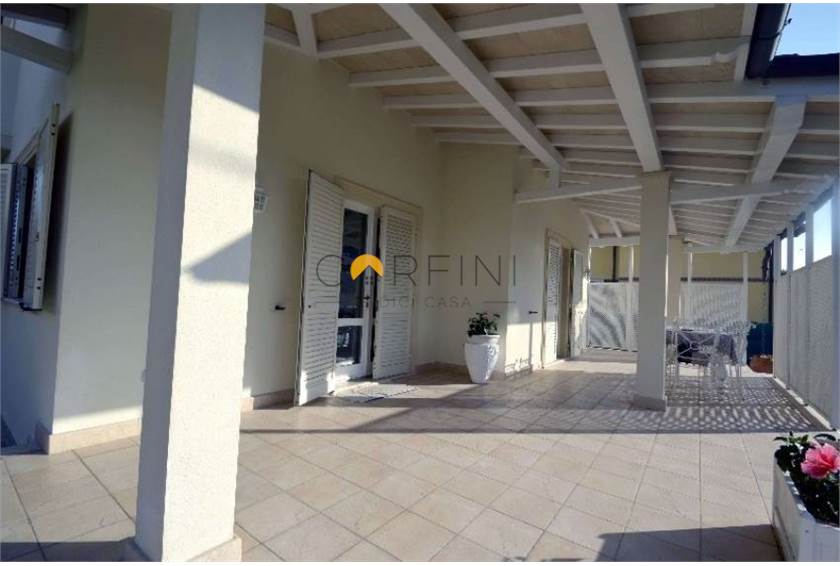 MARINA DI PIETRASANTA - Villa of new construction about 1km from the sea. On the ground floor we find: living room, kitchen, double bedroom and bathroom. Living room and kitchen overlook a large porch equipped for both outdoor dining area and living area. On the first floor, however, the hallway leads to two large double bedrooms served by a bathroom with shower and a double room with private bathroom. All rooms are served by balconies. From the living room, a travertine staircase leads to the basement where there is a large tavern, a kitchen and a bathroom with shower as well as two other rooms not furnished.