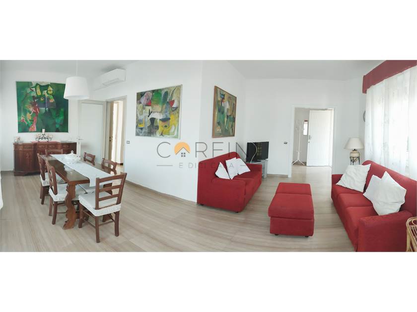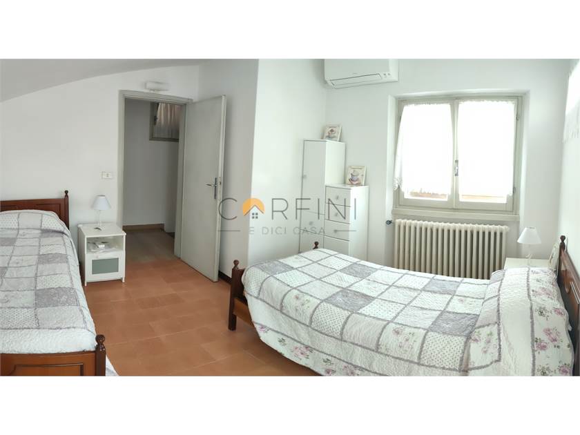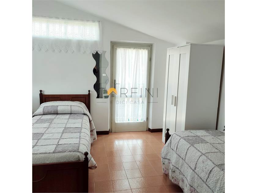 Internally it is composed as follows: GROUND FLOOR - Entrance, living room with direct exit to the beautiful terrace equipped for outdoor dining, kitchen with exit to another covered side terrace, 1 bathroom with shower. On the FIRST FLOOR we find a comfortable hallway, 1 double bedroom with private shower room and terrace, 1 twin bedroom, 1 double bedroom with terrace, 1 bathroom with bathtub. On the UPPER FLOOR we find a room with 2 beds with adjacent small storage room.