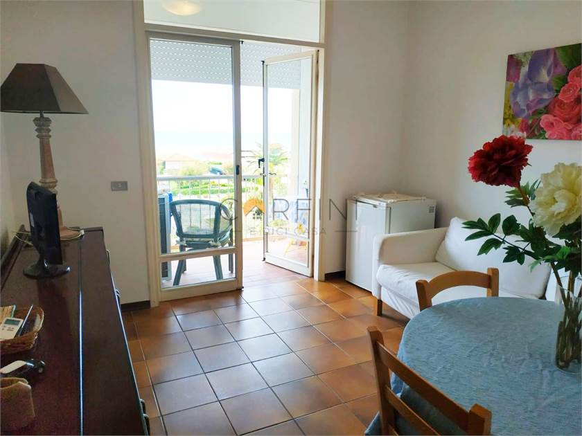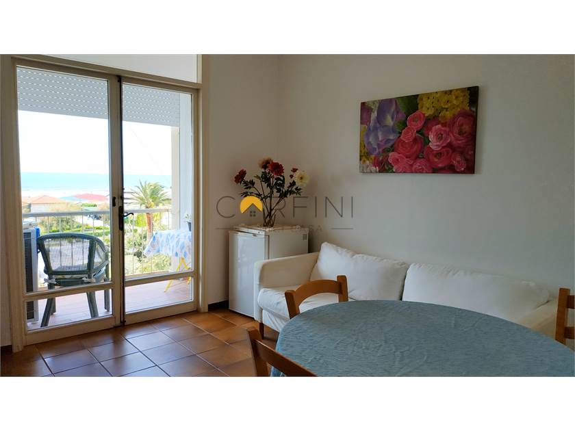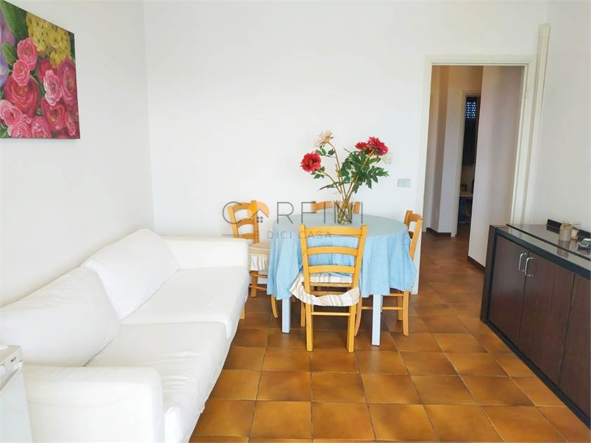 All'ultimo piano di un palazzo fronte mare con ascensore, posto auto, posto bici e climatizzatore, proponiamo un alloggio pratico e funzionale composto da ingresso, soggiorno, cucinotto, bagno con doccia e due camere: una matrimoniale e una doppia.