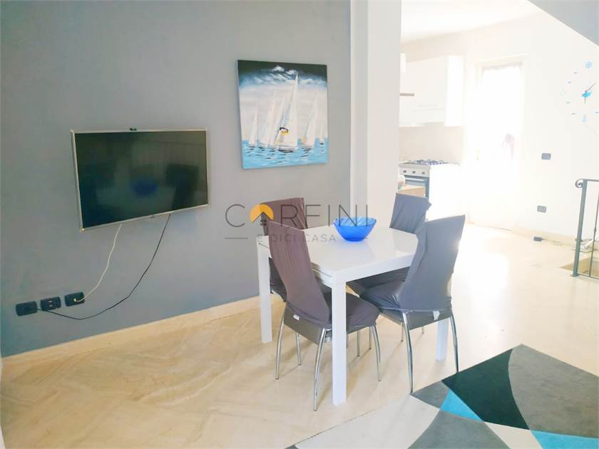 La casa si sviluppa su due piani. A Piano terra abbiamo una piacevole zona giorno con angolo cottura, soggiorno e bagno di servizio. Al primo piano due camere matrimoniali, una camera doppia ed un bagno con vasca. Da una delle due camere matrimoniali si accede ad un bel terrazzo organizzato.