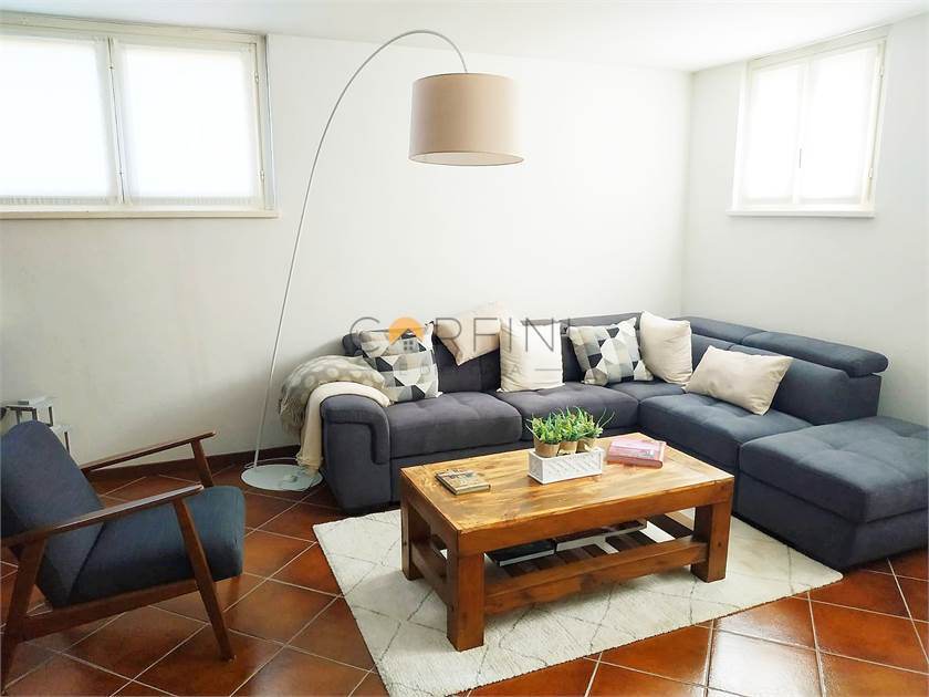 Infine dal soggiorno si scende ad un piano parzialmente seminterrato dove troviamo un ampio e luminoso salotto con due isole conversazione, una camera matrimoniale e altro bagno con doccia.