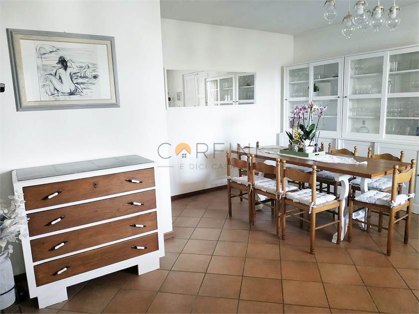 Al piano terra rialzato abbiamo una sala da pranzo con angolo relax, cucina, camera matrimoniale e bagno con vasca.