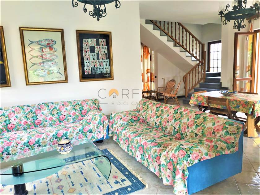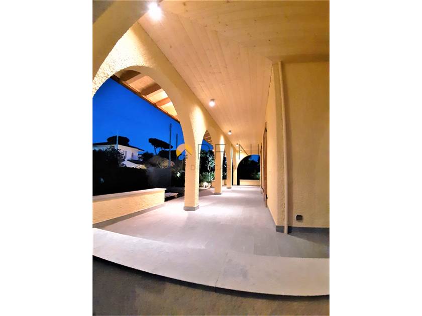 Il salone ha accesso diretto al portico dove viene allestita una piacevole zona living. Dalla cucina, invece, si accede al porticato con area pranzo.