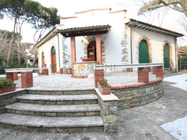 MARINA DI PIETRASANTA - In posizione tranquilla, a 200 metri dal mare, proponiamo in affitto villa singola disponibile per la stagione estiva 2026. La villa è dislocata tutta a piano terra e si compone di : ingresso - sala con zona pranzo - cucina abitabile - 3 camere - 3 bagni - ampio giardino con zona parcheggio interna. Soluzione ideale per famiglie di 6/7 persone. La villa è dotata di ampio giardino sui quattro lati con area parcheggio, cancello carrabile automatico e aria condizionata oltre ad un garage ad uso ripostiglio/lavanderia e rimessaggio.
