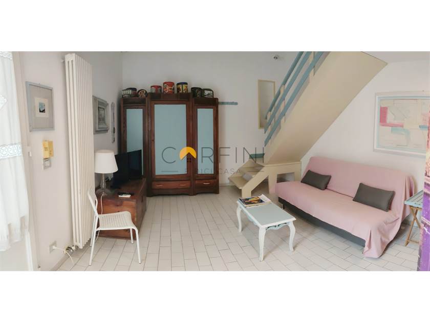 Il bilocale è dislocato su due livelli ed è così composto: Al piano terra troviamo un soggiorno con divano letto, cucina, 1 bagno con doccia. Al piano sottotetto troviamo una camera matrimoniale con letto extra.