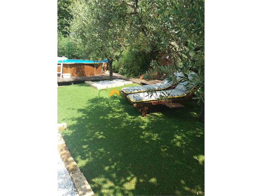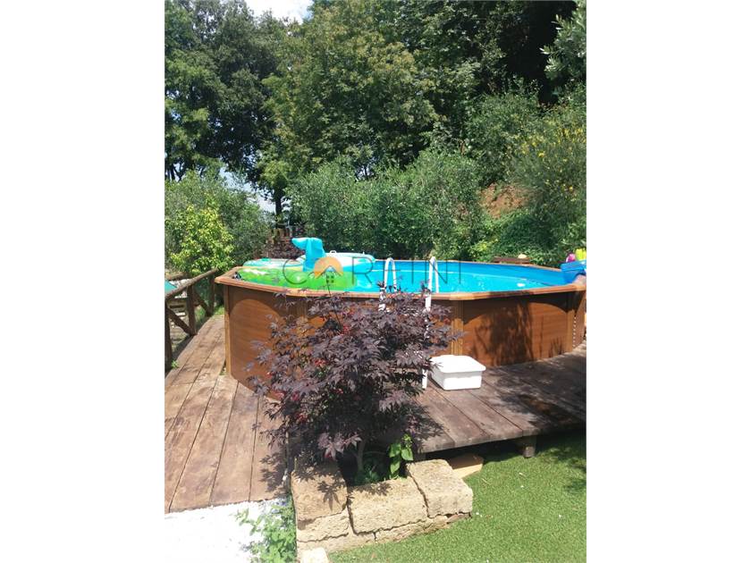 La proprietà è corredata di un terreno di 2.800 mq tra giardino, bosco e zona terrazzata. il giardino è dotato di una piscina fuori terra. Vista mare
