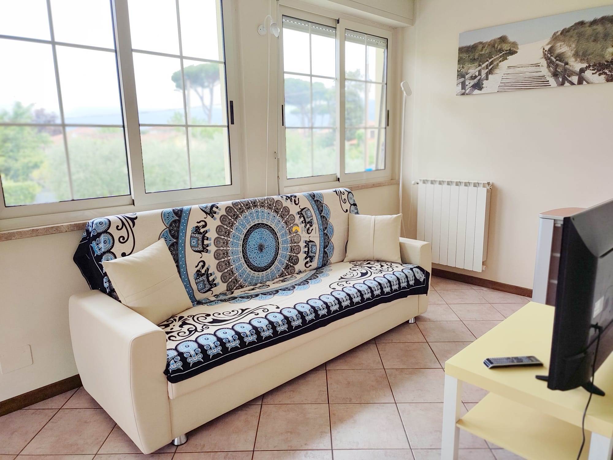 L'appartamento è dotato di aria condizionata nella zona giorno e di un posto letto aggiuntivo.