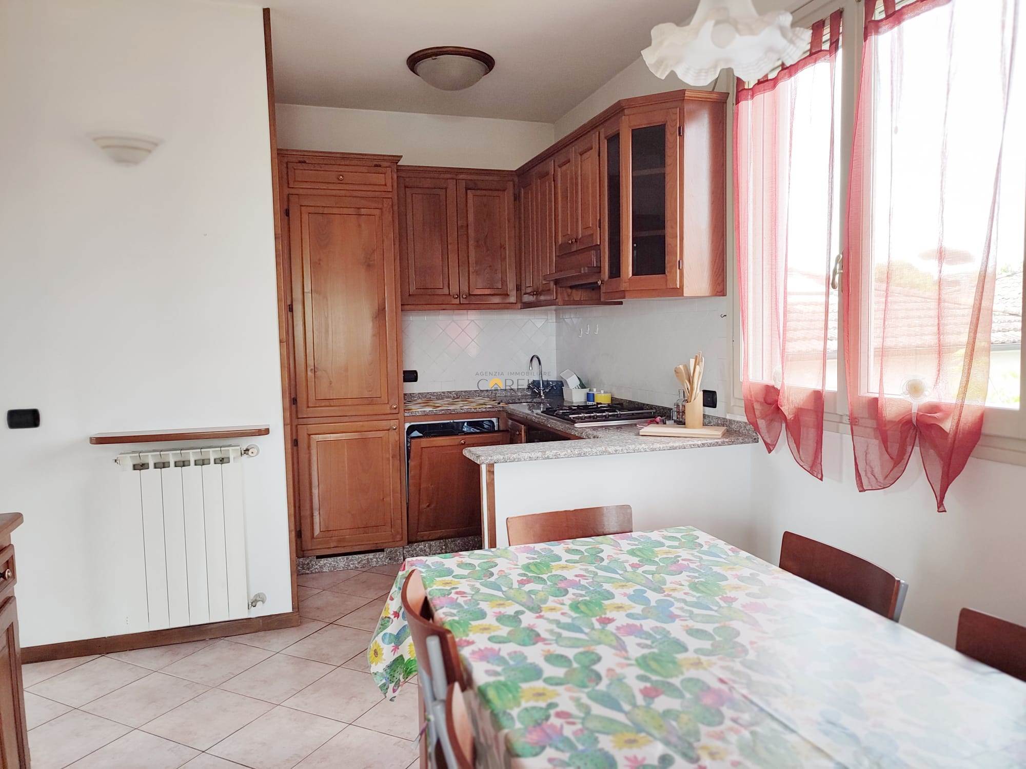 Internamente l'appartamento si compone di ingresso su soggiorno, cucina con zona pranzo, 1 camera matrimoniale, 1 camera singola, 1 bagno con doccia.