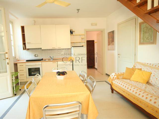 al piano terra si trova un accogliente soggiorno con zona cottura e pranzo, una camera matrimoniale e un bagno con doccia;