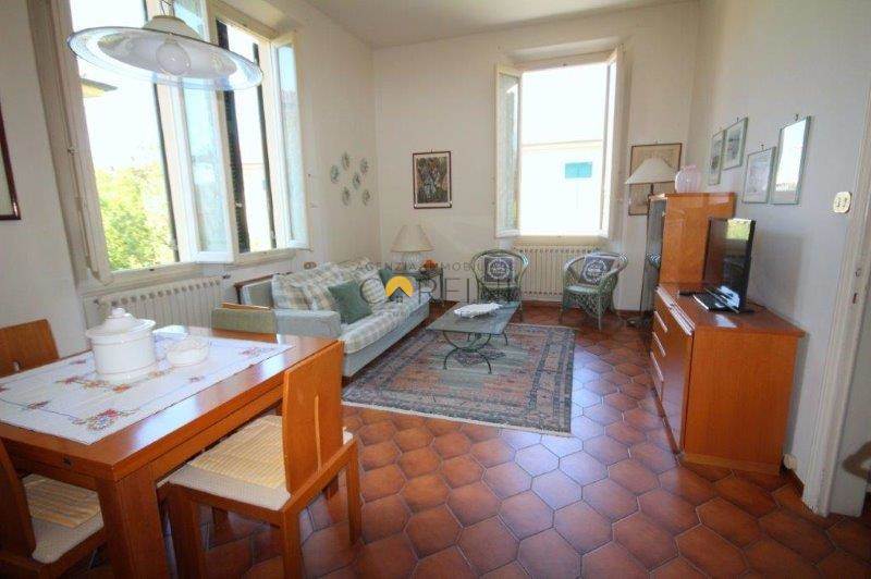 Nella tranquilla e apprezzata località di Motrone, in vendita il primo piano di una piacevole villetta bifamiliare in stile tardo liberty, situata a soli 200 metri dalla spiaggia.