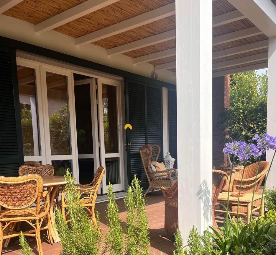 Nel giardino, di fronte alla dependance, una seconda veranda crea una perfetta area lounge all’aperto, ideale per momenti condivisi o pause più intime. La dependance dispone di una camera da letto e un bagno, offrendo uno spazio indipendente, perfetto per ospiti o per chi desidera una maggiore riservatezza.