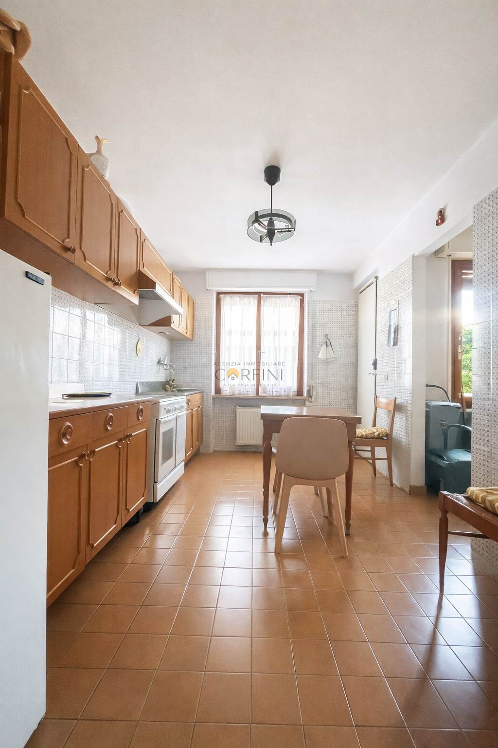 Il cuore della casa è rappresentato da un luminoso soggiorno, valorizzato da grandi aperture che permettono alla luce naturale di entrare durante tutta la giornata, creando un’atmosfera calda e accogliente. La cucina abitabile, comoda e ben organizzata, è affiancata da una pratica dispensa, perfetta per una gestione funzionale degli spazi.