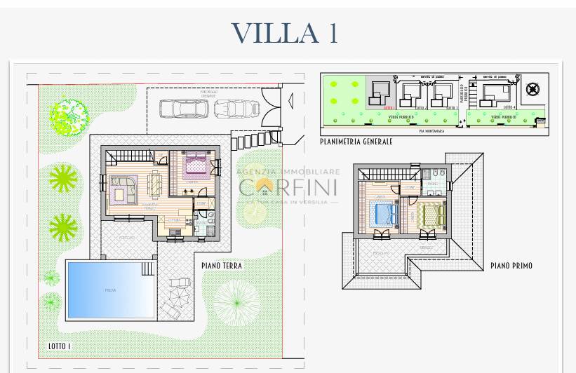 Tre ville si sviluppano su due livelli, con ambienti ampi e luminosi, zona living open space e terrazze intime. La quarta, tutta su un piano, offre il massimo della comodità con spazi fluidi e perfettamente funzionali, ideali per vivere ogni giorno con naturalezza ed eleganza.