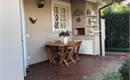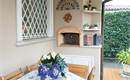 L'esterno della villa, molto curato e verde, è corredato da una bella zona pranzo all'aperto con forno, da un salotto esterno e da doppio ingresso con comoda zona parcheggio.